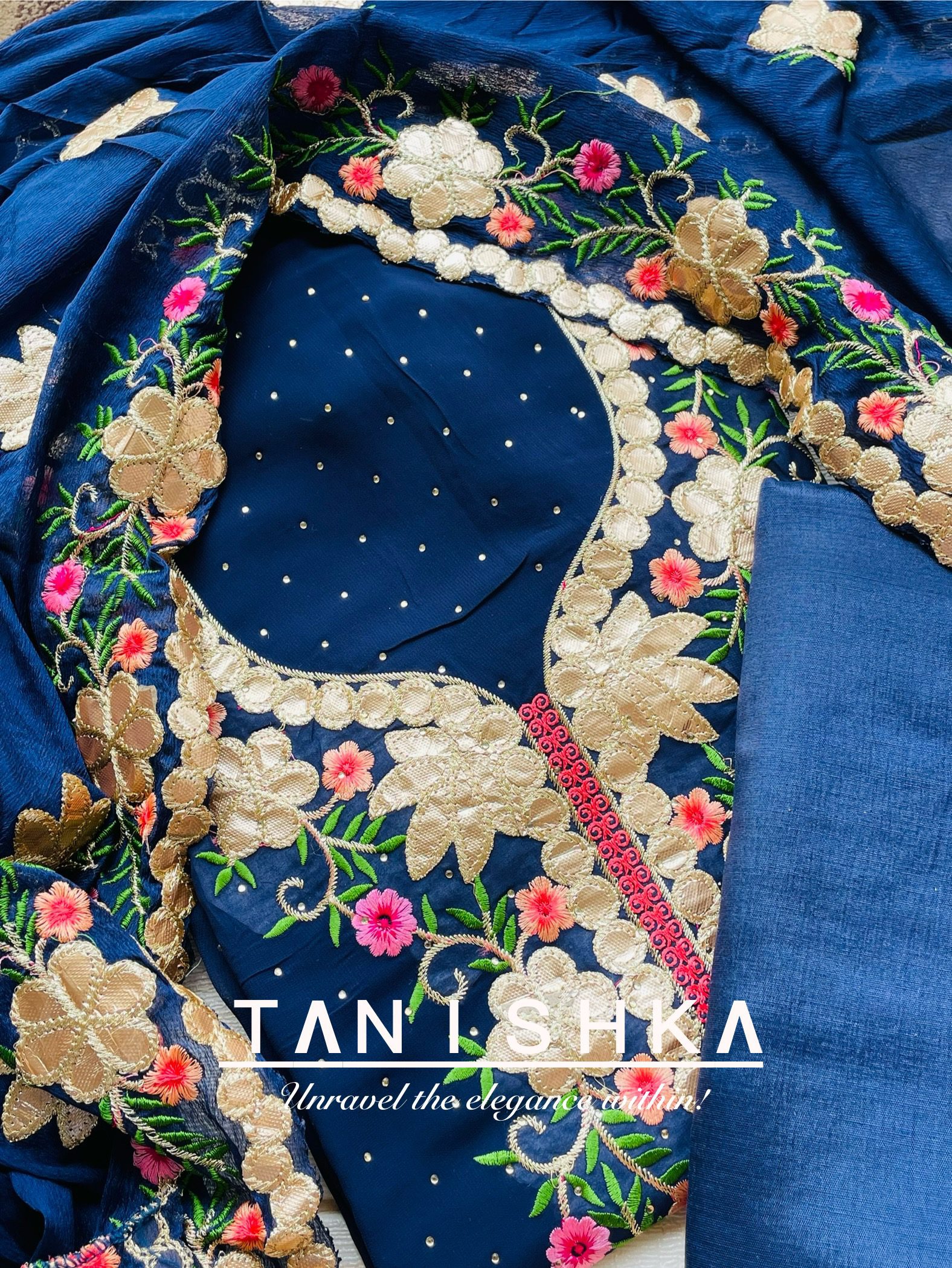 Previous Product Next Product Chiffon Suit with Gotapatti Work ₹3,200.00 Chiffon Suit with Gotapatti Work quantity Add to cart Category: Kurtis/Suit Sets Reviews (0) Reviews There are no reviews yet. Be the first to review “Chiffon Suit with Gotapatti Work” Cancel replyYour email address will not be published. Required fields are marked *Your rating * Rate… Perfect Good Average Not that bad Very poor Your review *Name * Email * Save my name, email, and website in this browser for the next time I comment. Opens in a new window Tweet This Product Opens in a new window Share on Facebook Opens in a new window Pin This Product Opens in a new window Mail This Product Related products Quick View Quick View Kurtis/Suit SetsBanarsi Cotton Silk with Golden Zari Work ₹3,200.00 Add to cart Quick View Quick View Kurtis/Suit SetsChanderi Suit with Embroidery Work ₹3,000.00 Add to cart Quick View Quick View Kurtis/Suit SetsBanarsi Suit with Golden Zari Work ₹4,500.00 Add to cart
