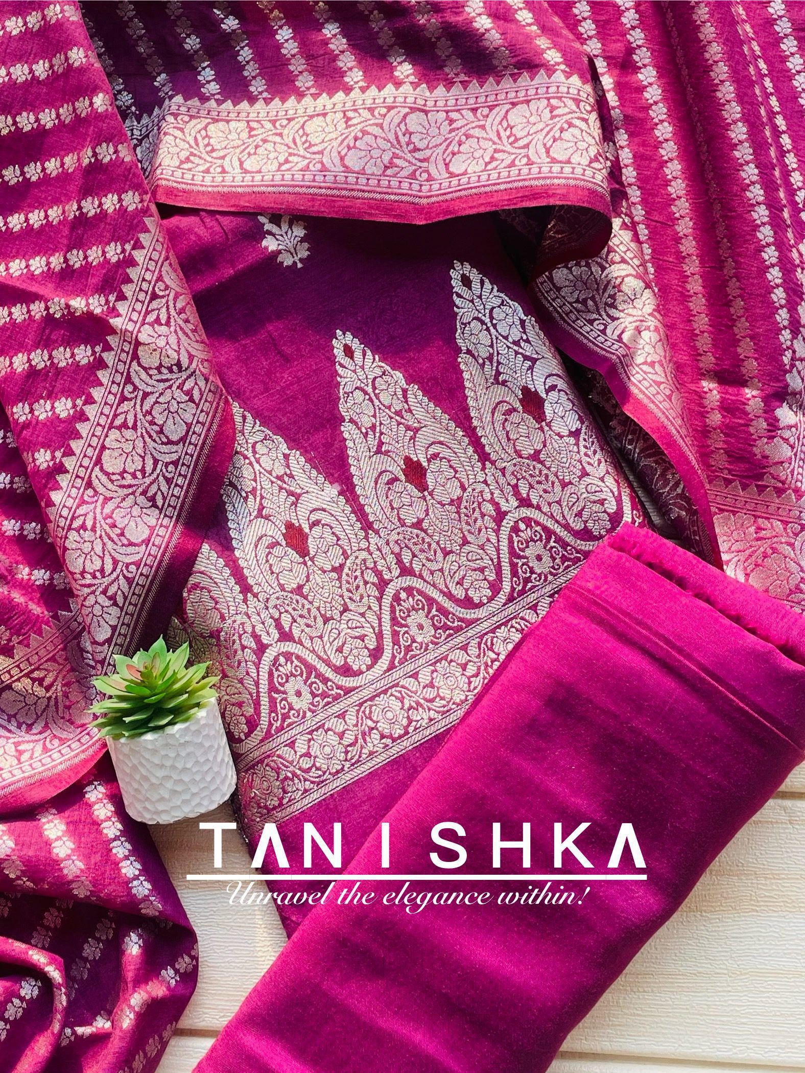 Next Product Banarsi Suit with Silver Zari work ₹4,200.00 Banarsi Suit with Silver Zari work quantity Add to cart Category: Kurtis/Suit Sets Additional information Reviews (0) Additional information Color Pink Reviews There are no reviews yet. Be the first to review “Banarsi Suit with Silver Zari work” Cancel replyYour email address will not be published. Required fields are marked *Your rating * Rate… Perfect Good Average Not that bad Very poor Your review *Name * Email * Save my name, email, and website in this browser for the next time I comment. Opens in a new window Tweet This Product Opens in a new window Share on Facebook Opens in a new window Pin This Product Opens in a new window Mail This Product Related products Quick View Quick View Kurtis/Suit SetsBanarsi Cotton Silk with Golden Zari Work ₹3,200.00 Add to cart Quick View Quick View Kurtis/Suit SetsBanarsi Thread Woven Suit ₹4,000.00 Add to cart Quick View Quick View Kurtis/Suit SetsChanderi Saroski Suit ₹3,000.00 Add to cart